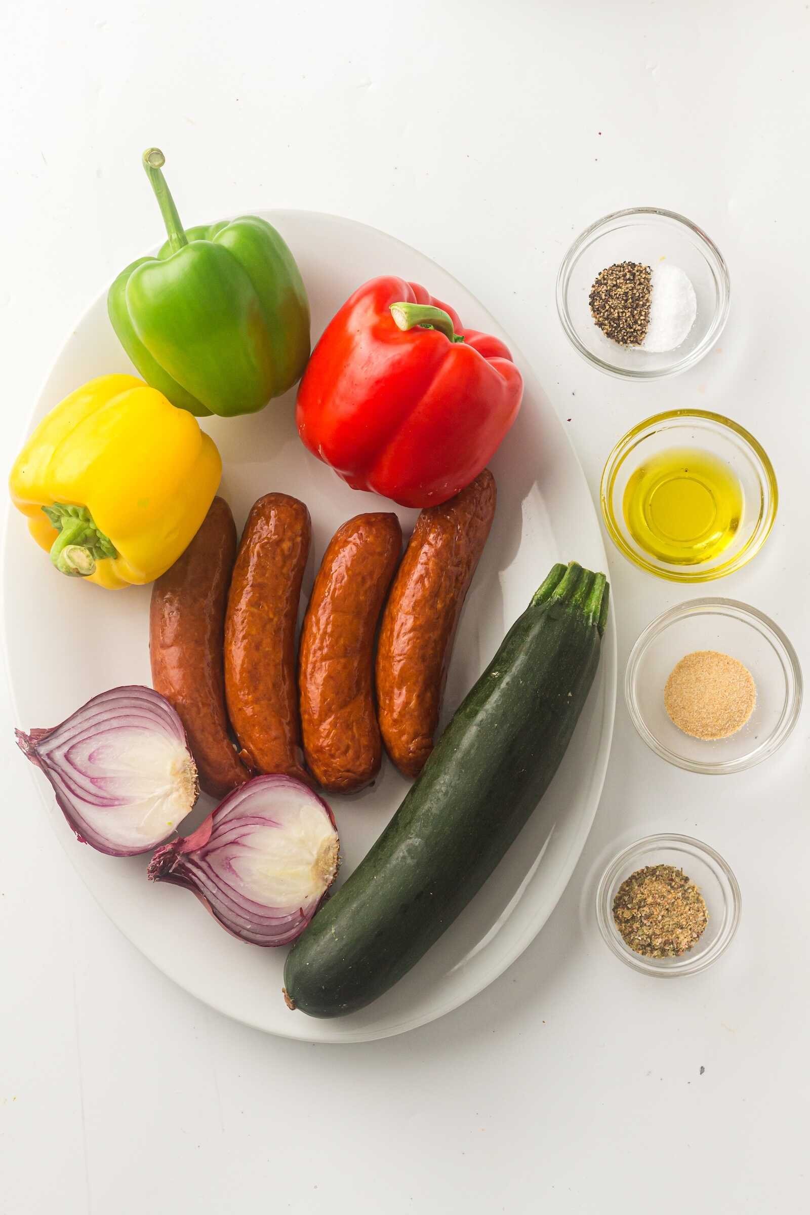 Yes! You can chop all the vegetables and slice the sausage ahead of time. Store everything in the fridge and simply toss with oil and seasoning before baking.