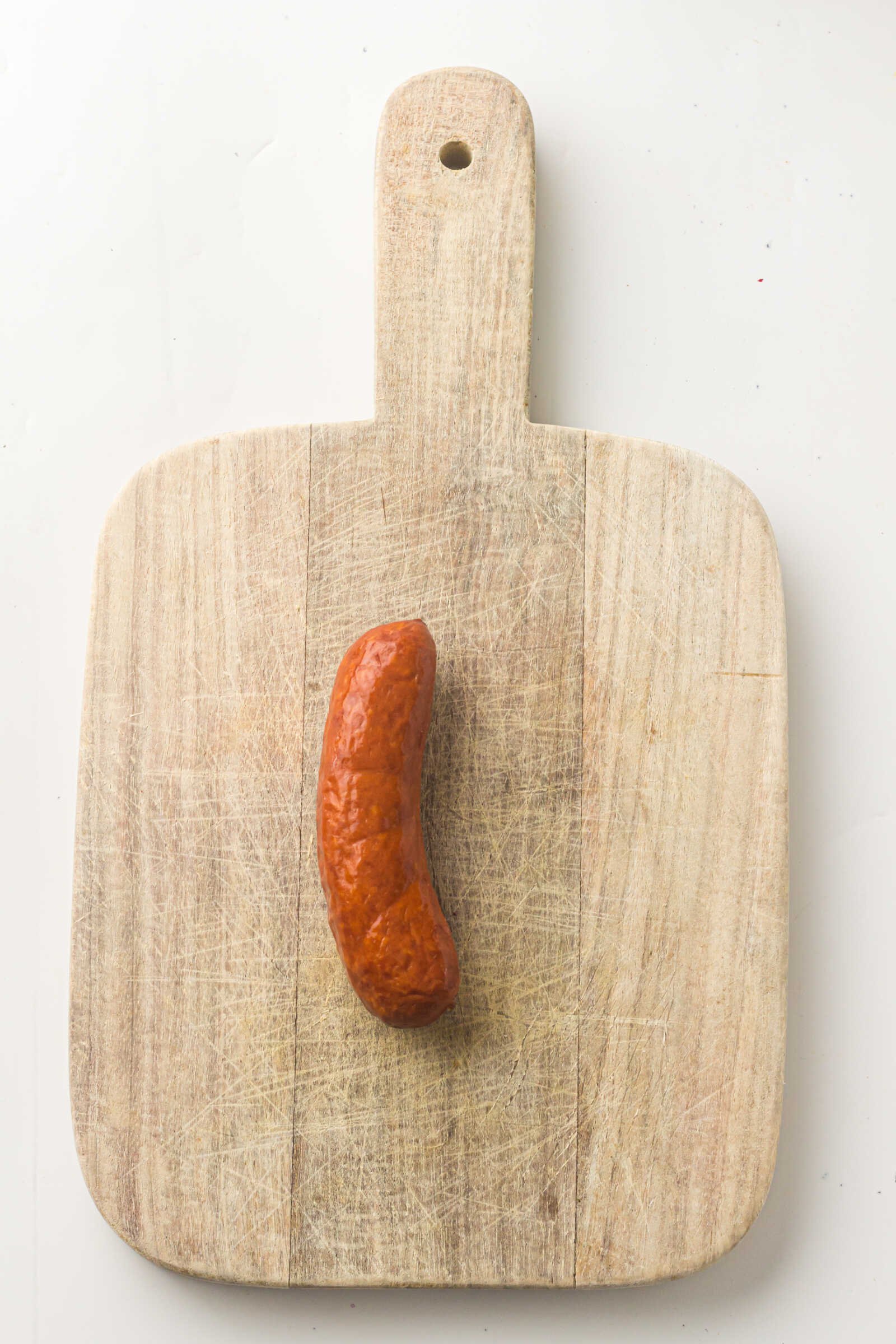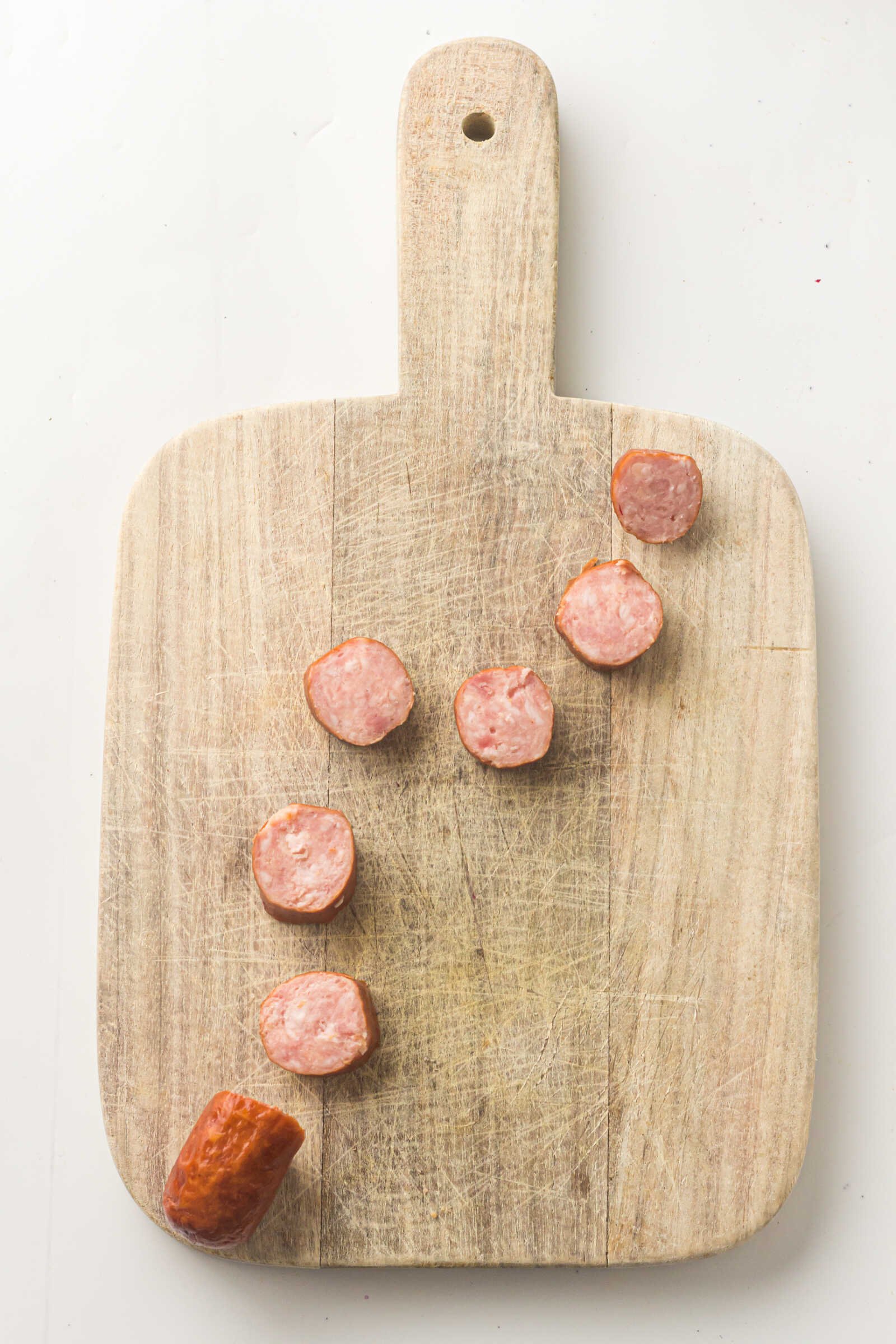 - Slice the sausage into ½-inch rounds