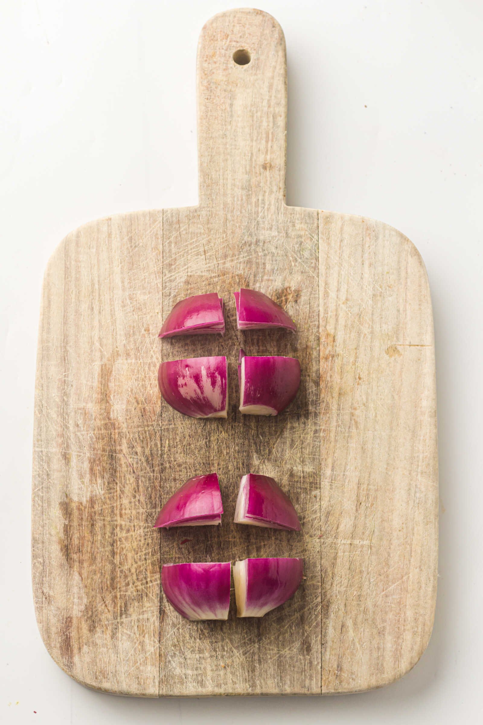 - Cut the red onion into wedges